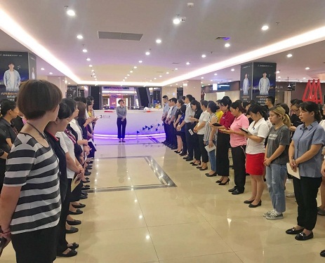 首先,于總主持了業(yè)務(wù)部的大晨會(huì),對(duì)業(yè)務(wù)部全體員工及在場(chǎng)商戶定下了新的目標(biāo):“帶出一流的隊(duì)伍,創(chuàng)出一流的業(yè)績(jī),展現(xiàn)一流的風(fēng)貌!”大家共事與武昌店這個(gè)高端賣場(chǎng)中,小到服裝禮儀、陳列迎賓,大到店面管理、日常銷售,都要對(duì)自己高標(biāo)準(zhǔn),嚴(yán)要求,力爭(zhēng)與武昌店的高端賣場(chǎng)形象相匹配。