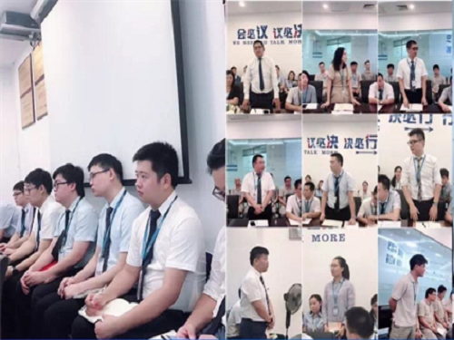 隨后,于總結(jié)合目前家居建材行業(yè)的最新動(dòng)向及多年的工作經(jīng)驗(yàn),向大家做了簡(jiǎn)單的分享,號(hào)召大家勤學(xué)習(xí),多動(dòng)腦,客戶需要定期維護(hù),銷售能力同樣需要日積月累,這樣才能成為賣場(chǎng)銷售的翹楚!同時(shí),于總號(hào)召大家打起精神,迎戰(zhàn)915活動(dòng),緊跟集團(tuán)和分公司的步伐,動(dòng)員商戶積極參與2018北京國(guó)際建材展暨設(shè)計(jì)博覽會(huì)。